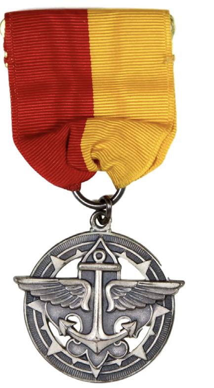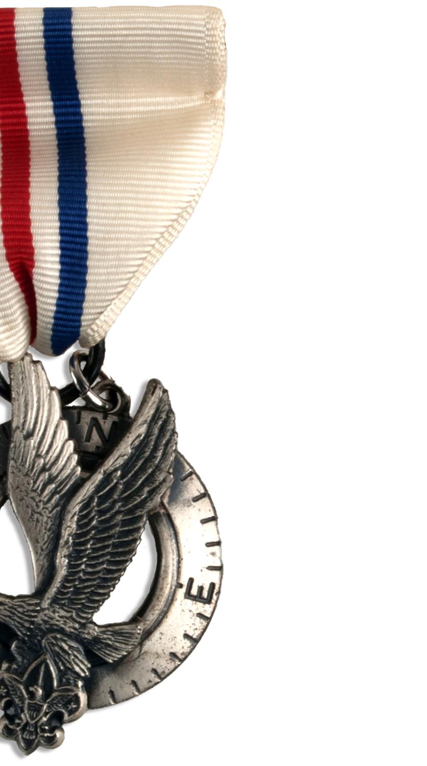 In 1954, another redesign of the Silver Award Medal was implemented. The updated Silver Award Medal had a white ribbon with a ying eagle on a compass. The requirements for advancement generally remained the same, but the new look of the award had a signi cant in uence on the early Venturing Award program. There were 18,256 Silver Awards earned up until the end of 1966. At that point, the Explorer program went through another large program change and discontinued their old advancement program.