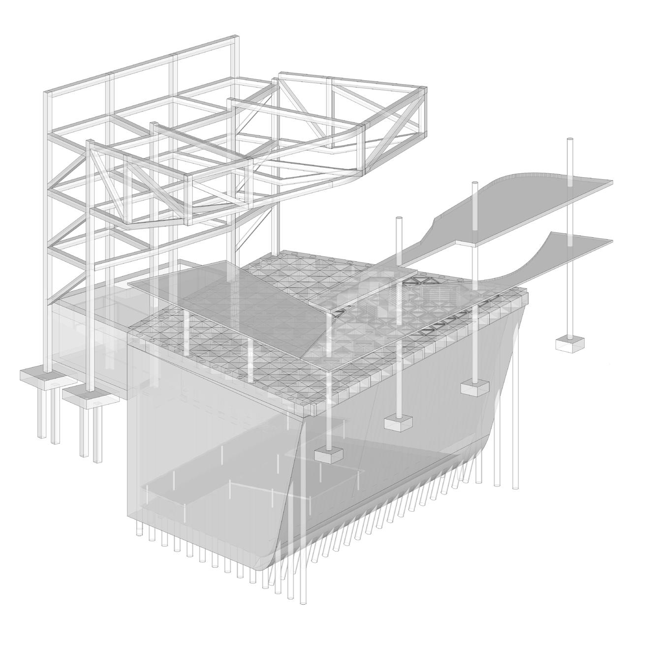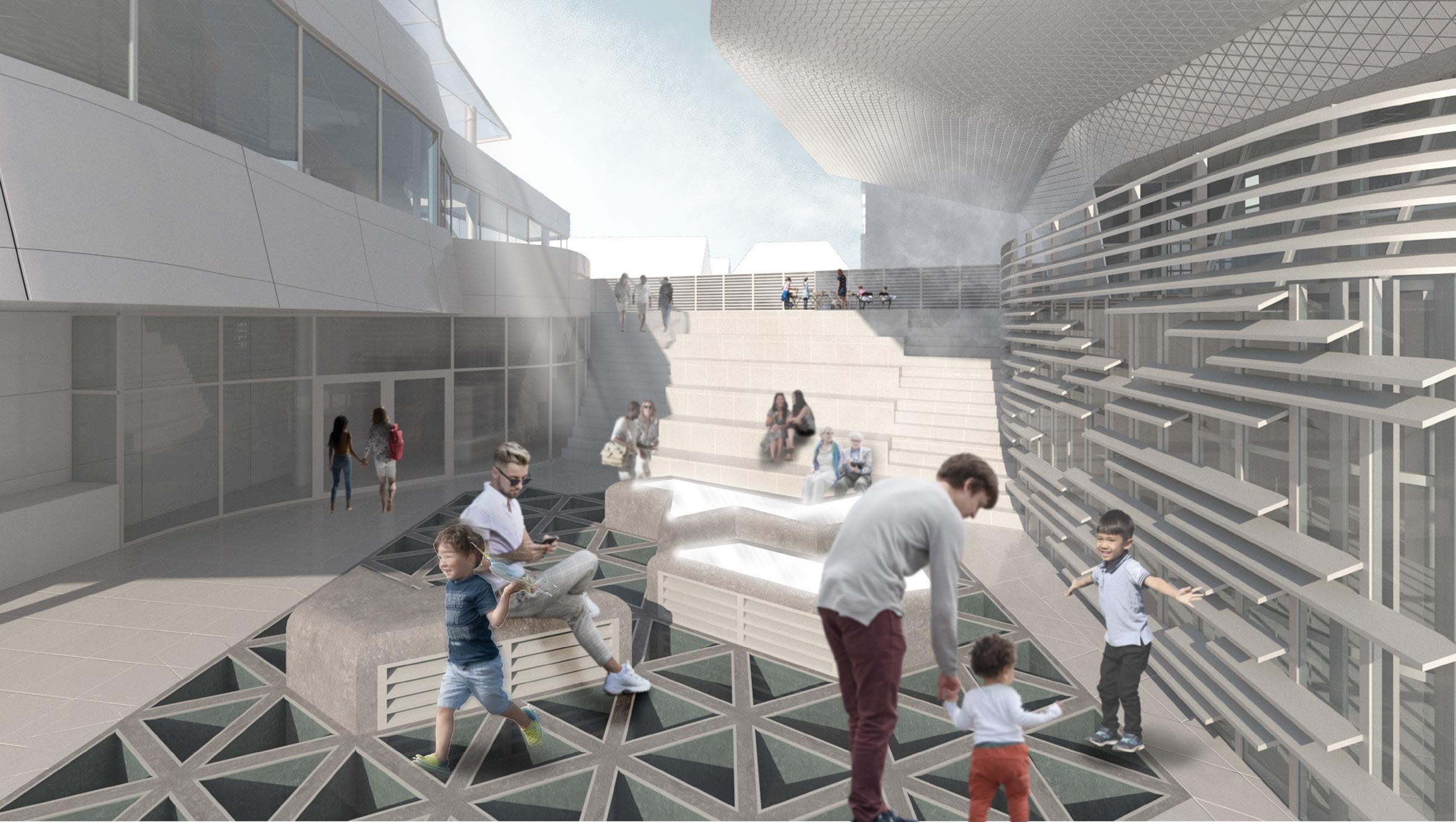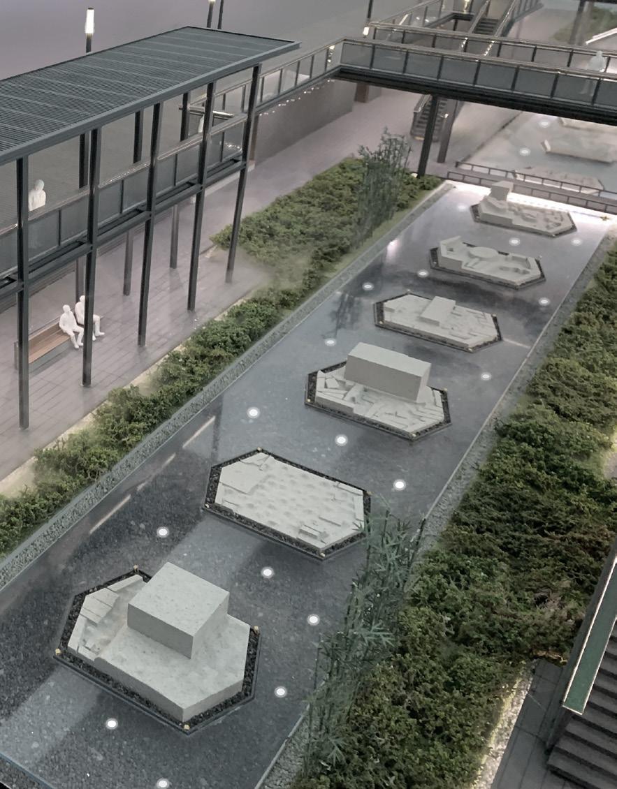 By responding to the characters of the remnants, geography and the surrounding activities, experiences are generated along the sunken Urban Valley. The entrance plaza of the urban valley is designed with a portal in fairface finish, welcoming visitors to experience the garden and archaeological exhibition. A silhouette to symbolize the Pavilion for Greeting Officials will appear together with its remnants, as a reminiscence of the Pavilion in the past history.