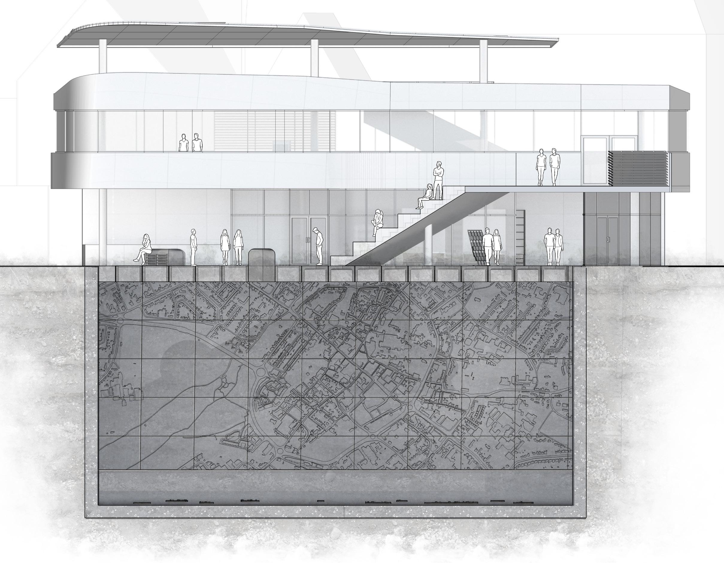 This is a conceptual arrangement to response the site condition, almost dark mysterious and eclectic. However active nor built on the site. A memorial museum of Canterbury which showcases an artifact in a large and deep basement, also renders a hollow and empty atmosphere of what Canterbury could sometimes make people feel.