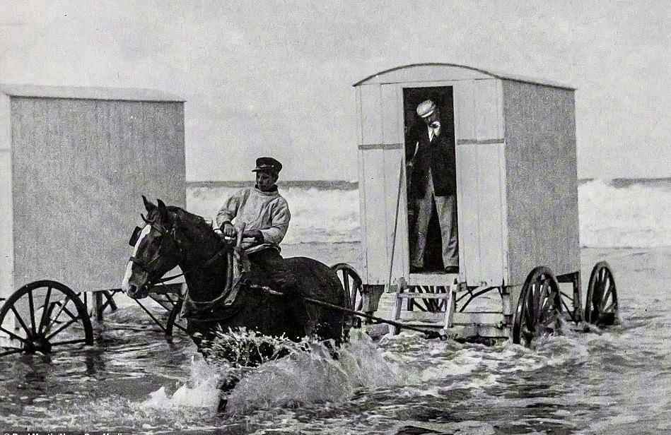 Bathing Machine is developed to protect privacy in 18th century, bathing machine was popular for people changing from their usual clothes into swimwear. Some bathing machines were wooden carts powered by horses, little by men and rolled into the sea. The use of bathing machines as part of the etiquette for sea-bathing was more rigorously enforced upon women than men, but it was to be observed by both sexes among those who wished to behave respectably.