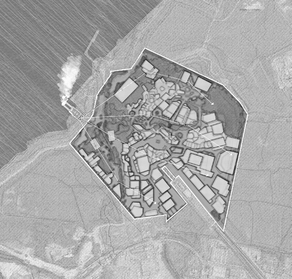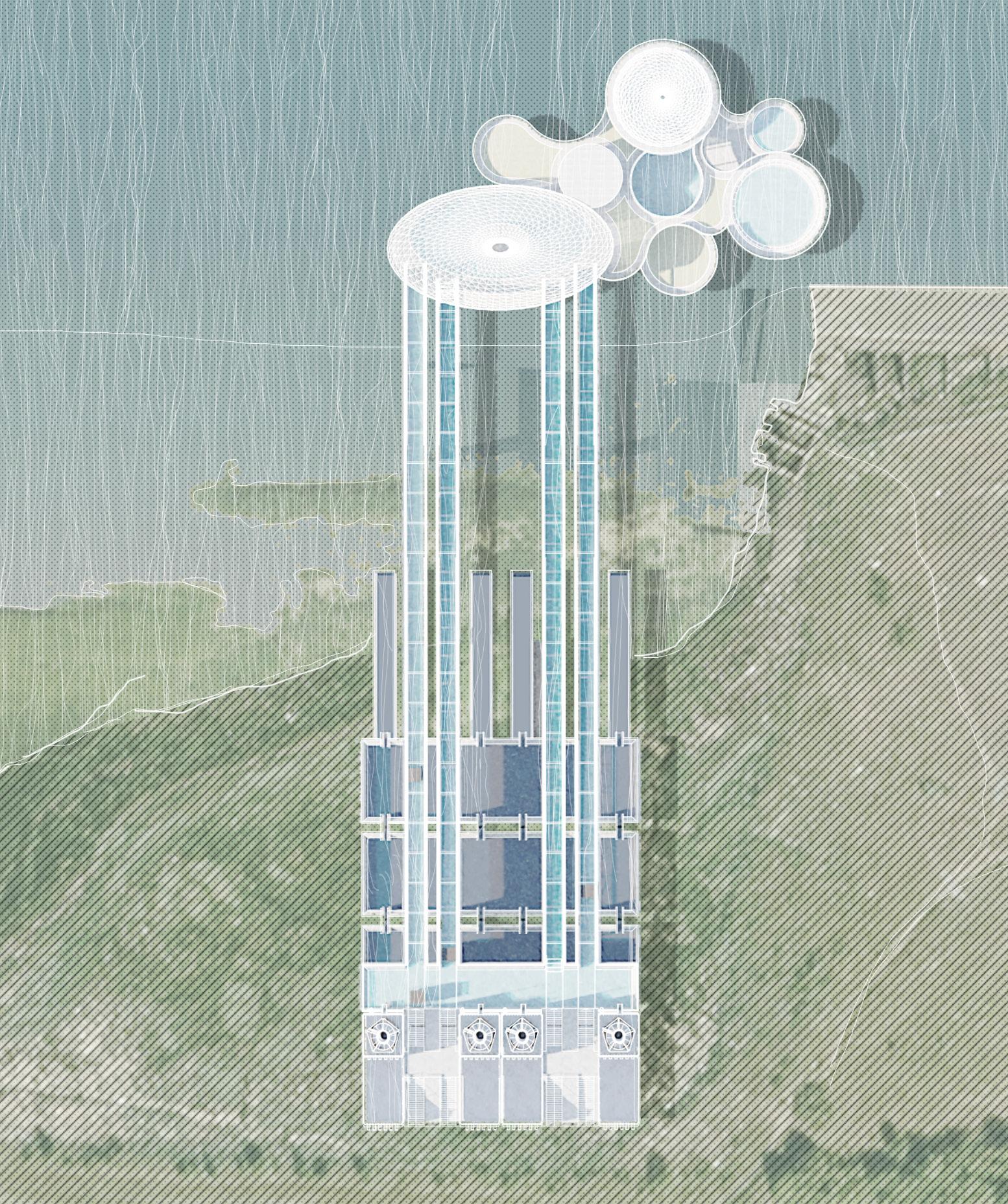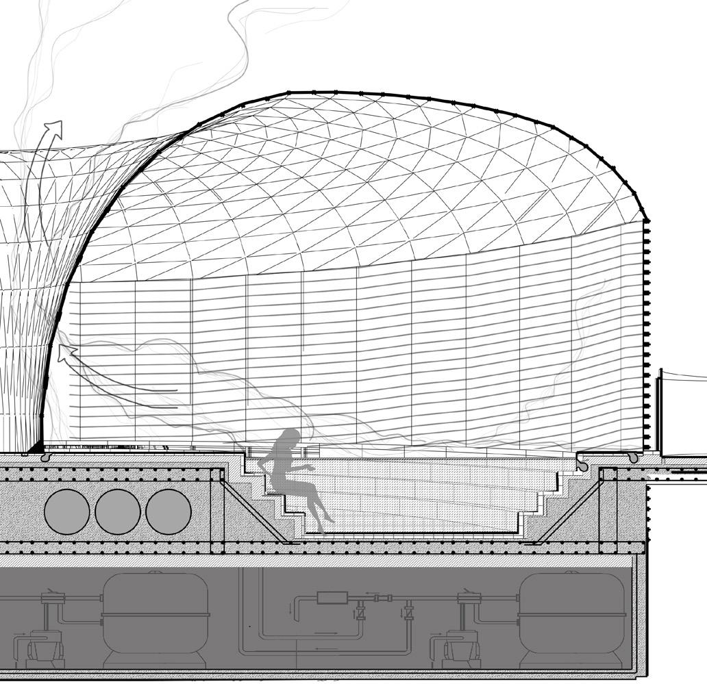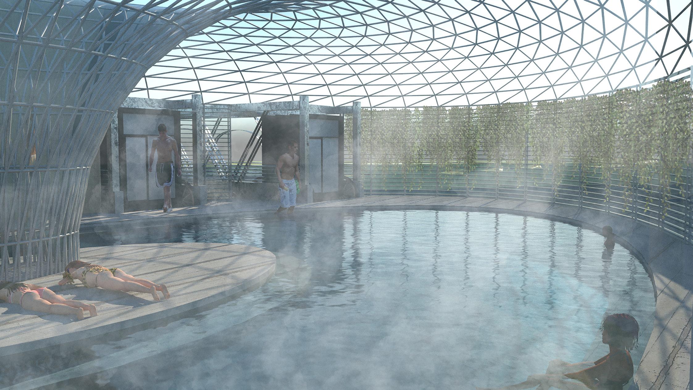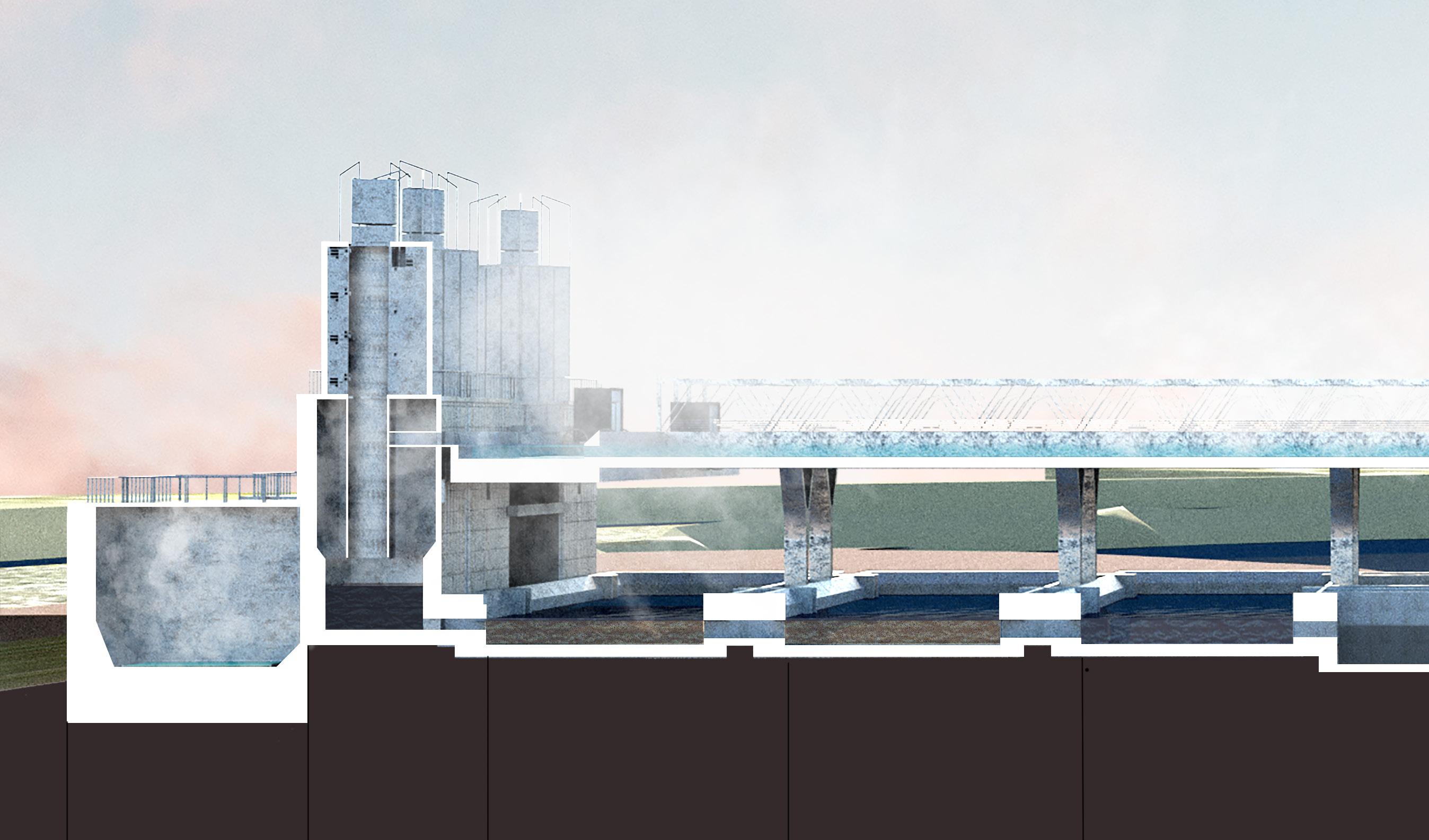 The project connects with the first part of a plower plant to the future London Resort in additional supplies of energy. The plant will exhuast steam as a by-product of the generation of electricity. From water to electricity and steam; from sea to plant to bath, this would be the major idea of the bath centre. The diagram shows the consumption relationship of the project with the future london resort. The project would be a generator as well as the releaser.