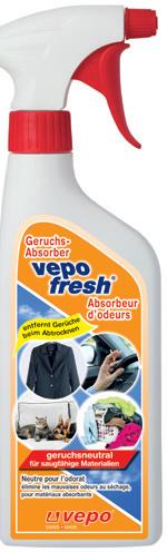 Sobald die Geruchsmoleküle haften, können diese nur durch Waschen gründlich entfernt werden. Für Oberflächen, die nicht oder nur aufwändig gewaschen werden können, schliesst vepofresh Geruchs-Absorber die störenden Gerüche dauerhaft ein.