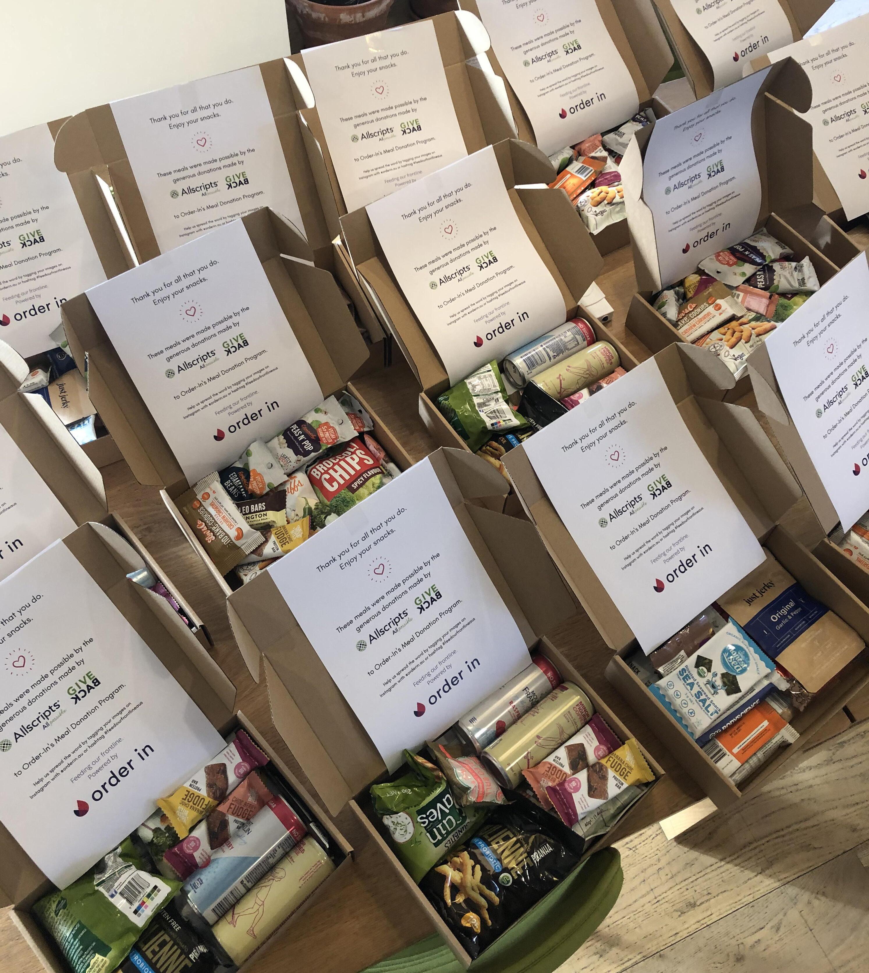 Allscripts associates and GiveBack teams across the company organized efforts to show their appreciation for frontline workers through snacks, goodies and care kits.