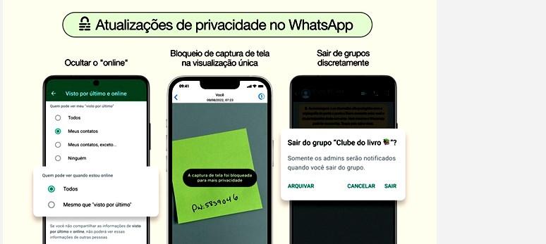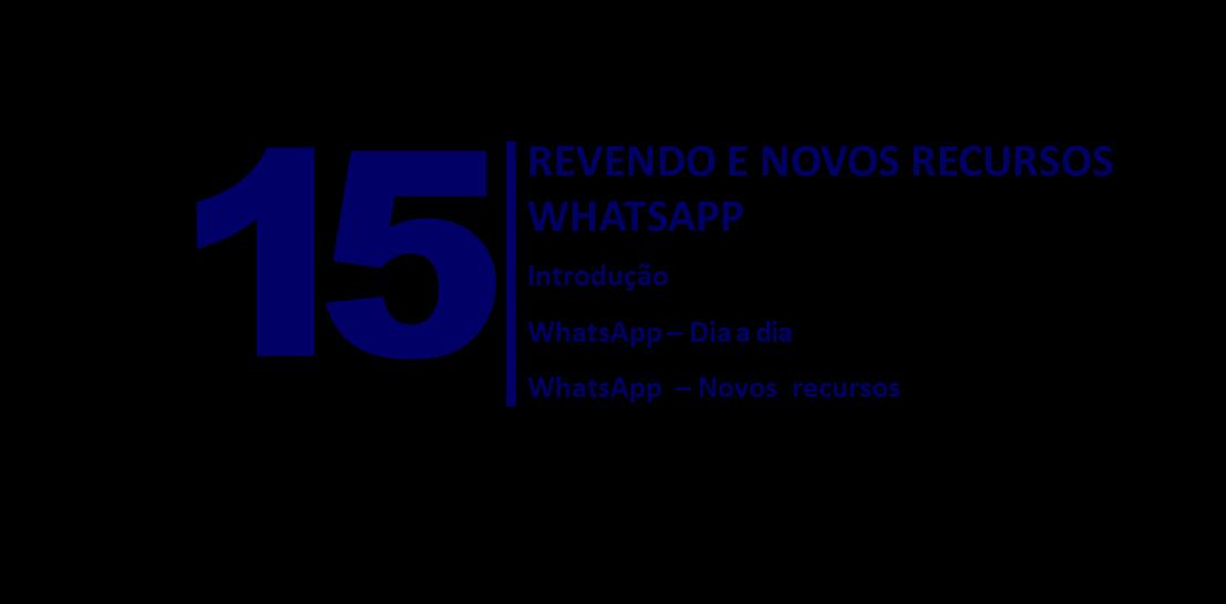 1. Encaminhar Mensagens? 2. Compartilhar mensagens em outros aplicativos? 3. Copiar e colar mensagens em outros aplicativos? 4. Salvar fotos e vídeos – Galeria – Fotos- só no Whatsapp? 5. Silenciar notificações de grupos ou contatos? 6. Pesquisar Conversas? 7. Atualizar Whatsapp? 8. Criar lista de transmissão ? 9. Apagar os vídeos e fotos de um grupo ou contato?