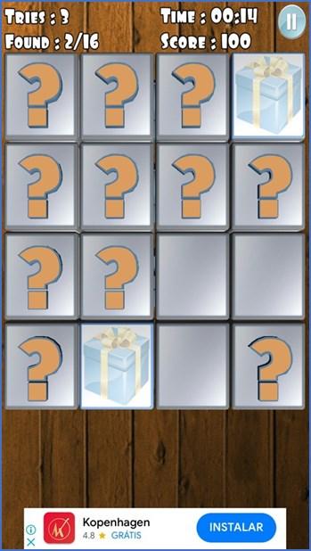 Toque em duas cartas, se elas forem iguais elas desaparecem na tela