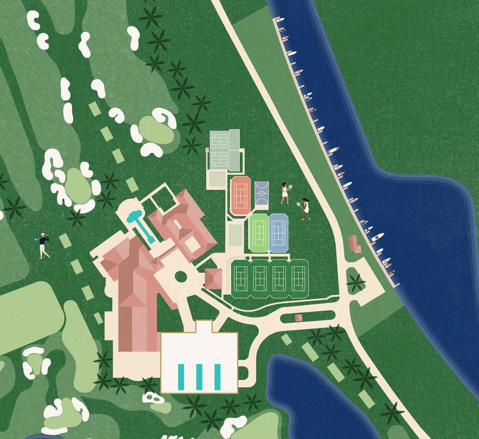 My vision for this property is not just a premier golf facility, but also to imbue it with refined hospitality so it is a place you never have to leave. Amenities include restaurants overlooking the golf course, a racquet club, swimming pools, a destination spa and private member offices with the latest technology.