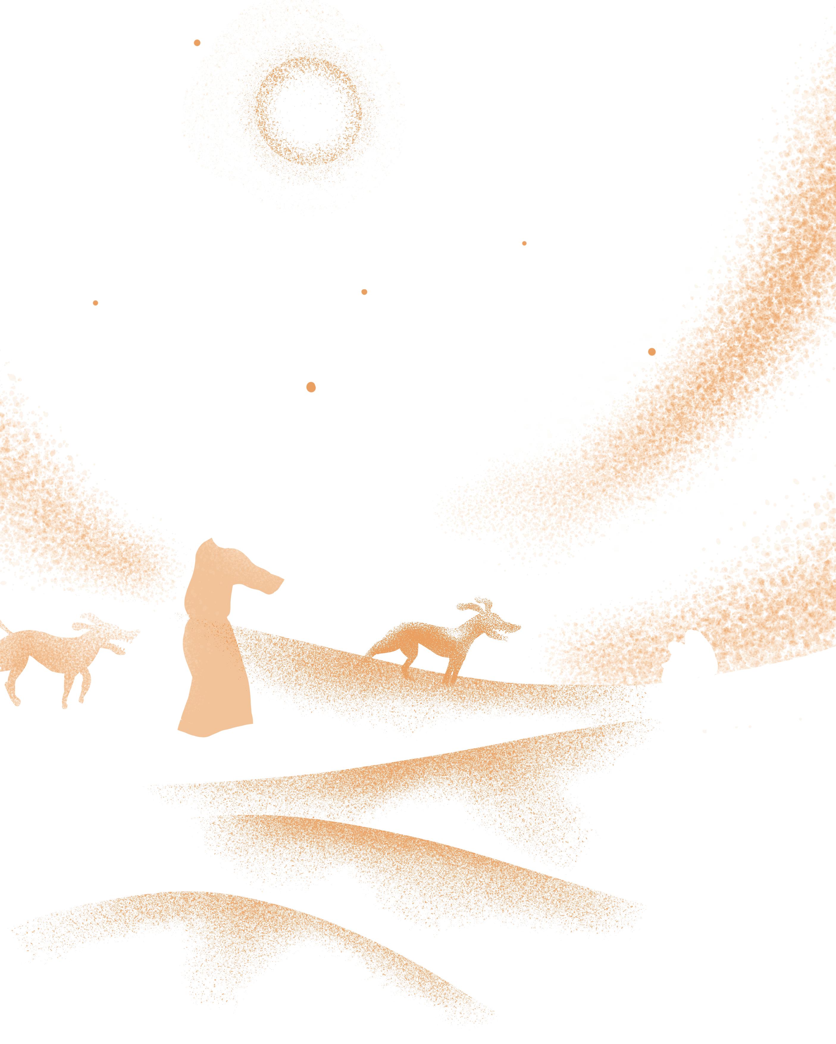 Čovjek koji je htio posuditi vatre ode do ovaca i vidje da pastiru uz noge spavaju tri velika psa. Kad je prišao, sva tri se probudiše i rastvoriše gubice kao da će zalajati, ali ništa se ne dogodi. Čovjek zamijeti kako im se dlaka na leđima nakostriješila, kako im se bijeli očnjaci sjaje pod svjetlom vatre i kako su jurnuli na njega. Osjeti kako mu jedan grize nogu, drugi ruku, a treći vrat. Ali čeljusti i zubi pse nisu slušali i čovjek ostane neozlijeđen.