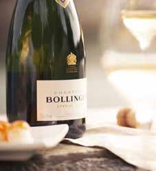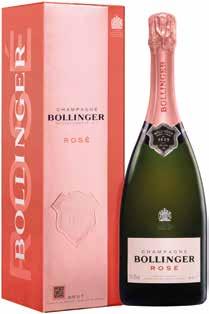 complex • rijk • gerijpt • toast • karamel • walnoten • peer • rijp fruit • champignons aperitief • sushi • sashimi • kreeft • diverse vissoorten • gezouten ham /52.9549.99 RoséBollinger Streek: Chardonnay,Druiven:ChampagnePinotNoir,PinotMeunier weelderig • fris • zacht • elegant • klein rood fruit aperitief • kreeft • zalm • Japanse keuken • Aziatische gerechten • fruitig gebak • frambozen /77.9569.99 CHAMPAGNEBOLLINGER Frankrijk