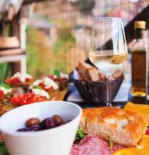 Verona, de stad van de openlucht opera’s in de Romeinse arena, de wijn hoofdstad ook van de Veneto, vormde het decor voor onze welkomstmaal tijd op 26 juni. Het was al volop zomer en de zwoele avond waaide bijna bin nen bij Casamatta Bistrot, op korte af stand van de arena. Daar vielen we aan op de antipasti, de pasta en het klap stuk: zoet gesudderd paardenvlees, pastissada, het icoongerecht van de stad. Daarbij paste uiteraard niets an ders dan een grootste Amaronewijn. De volgende ochtend, na enkele caf fè macchiato’s in de nog koele, smal le Veronese straatjes, ging de tocht naar Azienda Vinicola Farina, in de groene, met wijnstokken bedekte heuvels van de Valpolicella. Heel wat daarvan groeit nog als de tradi tionele pergola’s, hoog opgebonden om te druiventrossen te behoeden voor een teveel aan zon. Wijnmaker Claudio Farina en zijn zus Silvia ston den al klaar om ons rond te leiden en in te wijden in de geheimen van de wijnmakerij, Valpolicella natuurlijk, Amarone en de ‘tussenvorm’ ervan, Ripasso. ‘We zijn geboren in een fami lie waarin wijnmaken van de ouders op de kinderen werd overgedragen,’ ver telde Silvia. ‘Als iets onvermijdelijks eigenlijk. Toch zijn we erin gestapt en verliefd geworden op het vak. We hebben tien hectaren wijngaard in bezit en de andere 35 waarvan we de druiven verwerken zijn van vertrouw de telers die we al heel lang kennen.’ De Farina’s zijn de trotse eigenaars van twee historische cru’s in het ge bied, de Montefante, met een vulka nische bodem van kalk en klei, en de Montecorna, op de flanken van de Monte Masua. Van de eerste komt de Amarone Reserva, van de tweede de Ripasso, waarvan we aansluitend de smaken mochten ontdekken. Daarna was het tijd voor wat Silvia ‘een lich te lunch’ noemde: een feestmaal met eerst risotto met groene asperges, daarna een duizelingwekkend as sortiment van kazen en vleeswaren, Tiroler speck, coppa in druivenmost gewassen, pancetta salamata en wat al Omniet.het productiegebied van Pro secco te bereiken moet je vanuit Verona twee uur naar het oosten rij den, zo bleek de dag erna. Dat was geen straf, de route voerde door de voetheuvels van het Dolomietenmas sief, waar overal kleine dorpen tussen de akkers en wijngaarden schuilen.