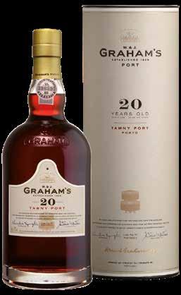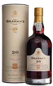 De jaaraanduidingen geven een gemiddelde leeftijd van de lagering op hout weer, bij Graham’s is dit nog eens 5 jaar meer. Port blijft lang goed, mits de fles goed is afgesloten, maar waarom zou je? Het heten niet voor niets fééstdagen toch? Gra ham’s 20 Years Old Tawny is het resultaat van de zoektocht van de Master Blender naar de perfecte balans tussen jonge en oude Port wijnen. Een bouquet van amandelen, honing, karamel en gedroogd fruit. De stijl van de Graham’s 30 Years Old Tawny is zacht, zeer subtiel en prachtig in balans. Het fluweelzachte mondgevoel van de Graham’s 40 Years Old Tawny is meesterlijk geblend met een verbluffende balans van zuren en zoet. Tot ver in de afdronk vervullen tonen van noten, rozij nen, karamel en chocolade de smaakpapillen.