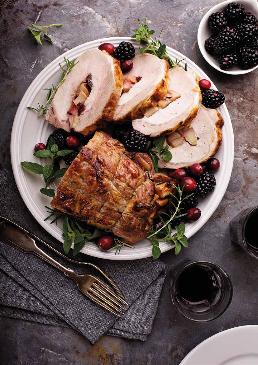 Een groot stuk gegrild vlees op een houten plank met wat verse kruiden erop en dan lekker samen delen voor het ultieme kerstgevoel. Ook lekker: stevige wildgerechten of een kaasplank met harde kazen.