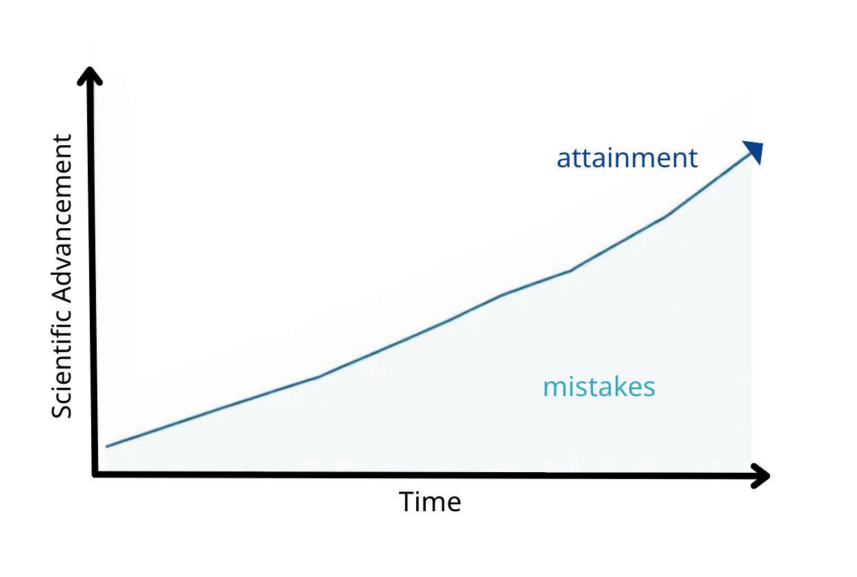 Particularly, within the field of empirical science “Negative Growth” is an indispensable forerunner that opens the possibility for “growth”. The scientific progression had always been a fluctuating progress and by no means linear. Over time, the net projection is inevitably upwards, little is remembered of past unsuccessful attempts, citation, award, honor always adorn what is plausible at the moment. To represent this visually, fluctuation in an uprising trend would be a poor metaphor. Instead consider the area under the growing trend.