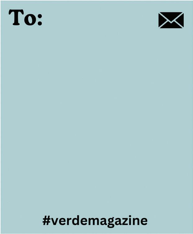 The staff welcomes letters to the editors but reserves the right to edit all submissions for length, grammar, potential libel, invasion of privacy and obscenity. Send all letters to verdemagazine1@gmail. com or 50 Embarcadero Rd Palo Alto, CA 94301.