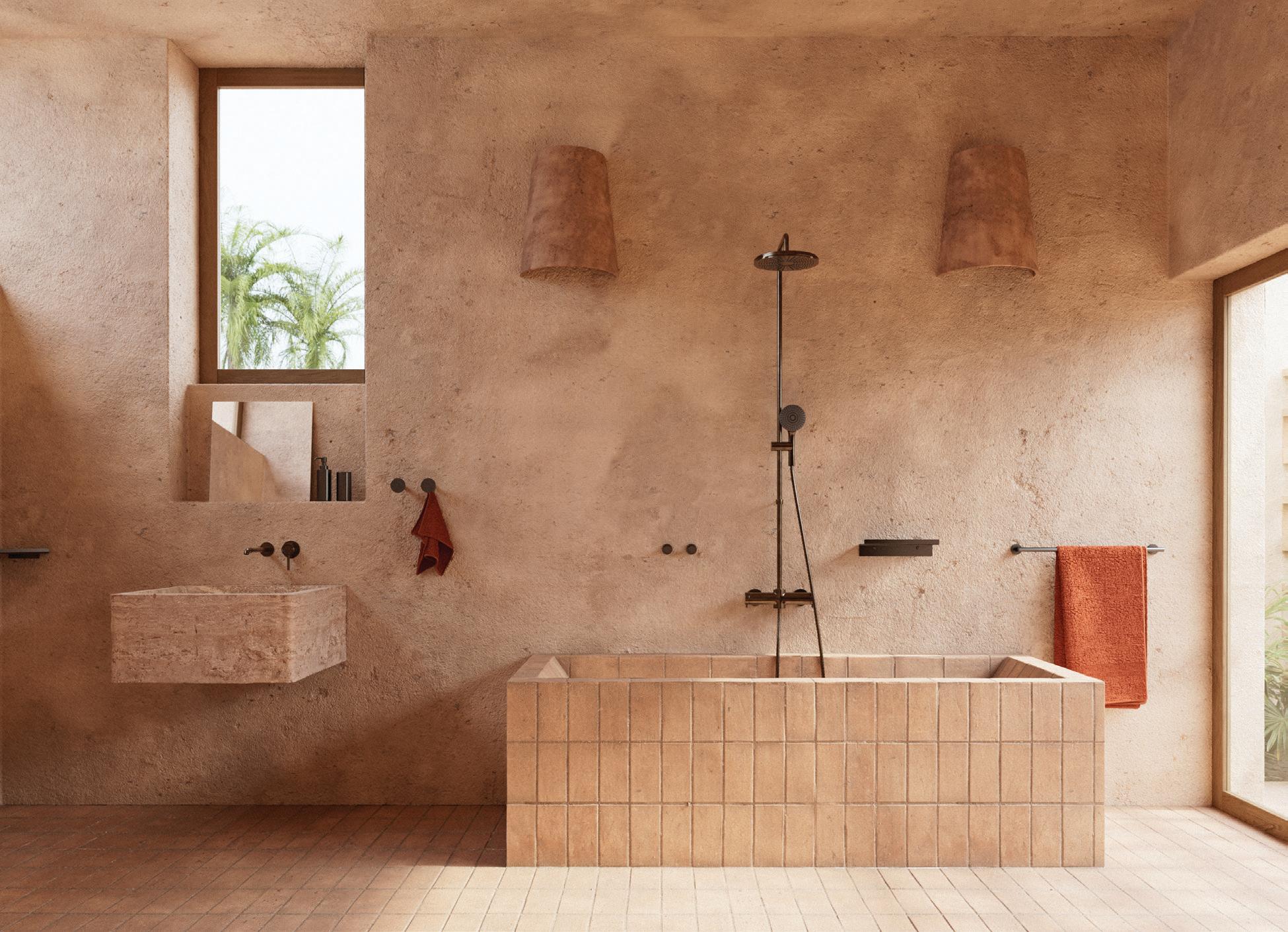 Accessories in warm copper tones have a leading role in the bathroom, complementing the design and the rest of the Brushederials with a touch of elegance.
