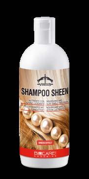 Shampoo Sheen è l'ideale per lavare i cavalli in ogni occasione. Sgrassa, deterge e nutre tutti i tipi di manto, di criniere e di code. La speciale formula con "effetto sheen” rende manto e crini morbidi, setosi ed estremamente lucidi e brillanti. Ideale da usare in combinazione con Super Sheen.