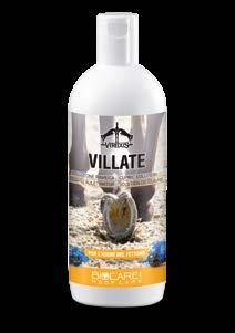 > La formazione di una pellicola protettiva rende il crine e il manto impermeabili e repulsivi alla polvere e alla sporcizia tipica della lettiera (torba, trucioli, ecc.).