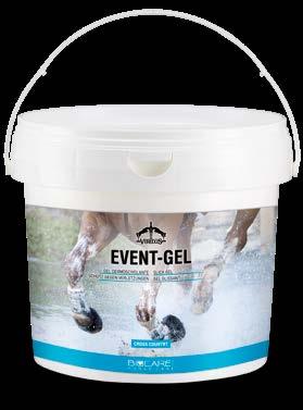 Event-Gel è un gel scivolante studiato specificamente per i cavalli da completo, indispensabile nella fase del cross in campagna dove è necessario superare ostacoli naturali come siepi, tronchi fissi o terrapieni.