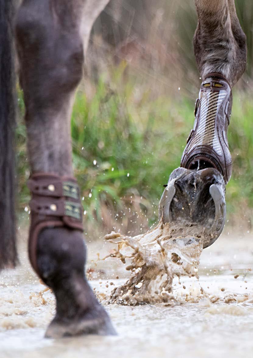 Il suo utilizzo rende lo scafo ALTAMENTE RESISTENTE agli URTI in particolar modo nelle zone del TENDINE FLESSORE e del NODELLO maggiormente esposte al rischio di contatto con i ferri degli arti posteriore e adiacente.