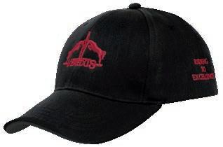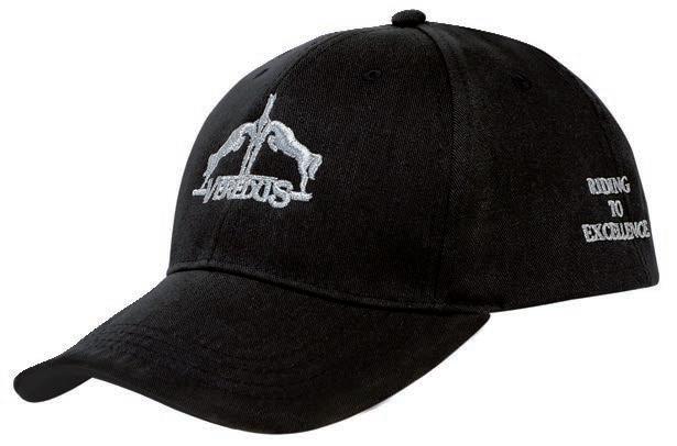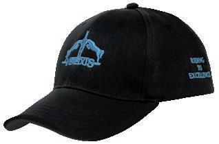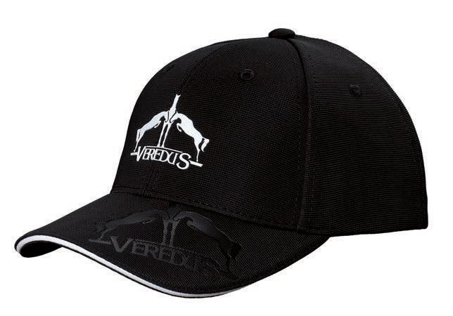 Schwarzes Cap mit 6 Panels und Veredus Logo auf dem Schirm und auf dem Kopfteil, unisex. Material 100% Polyester mit Ottoman-Oberfläche, atmungsaktiv, antibakteriell und wasserabweisend. Verstellbar durch Nackenband und Stegschnalle mit Laserprintlogo von Veredus.