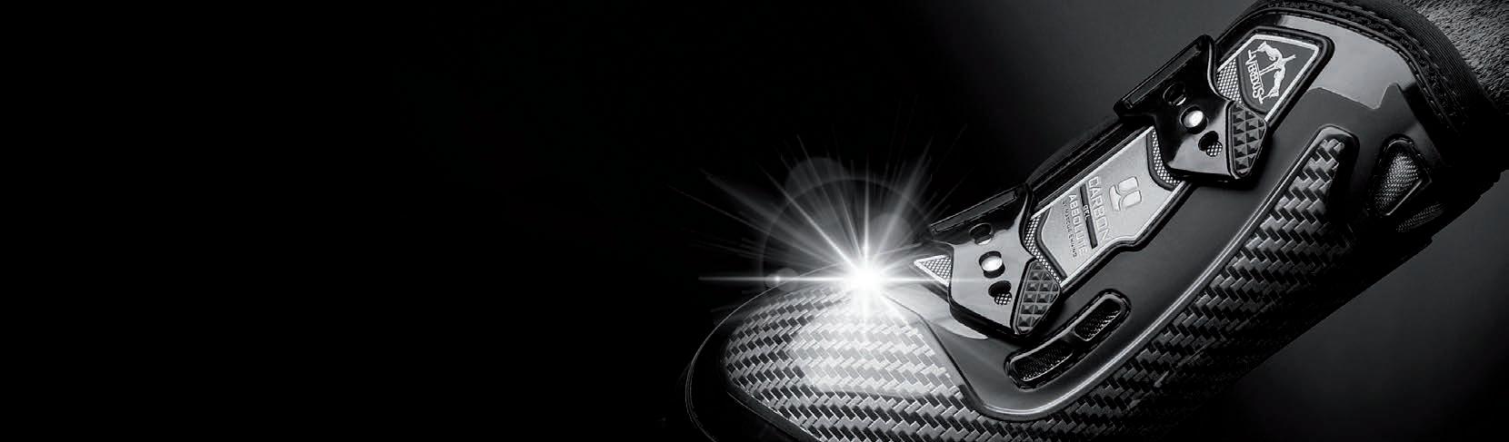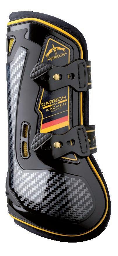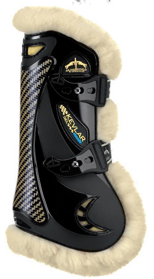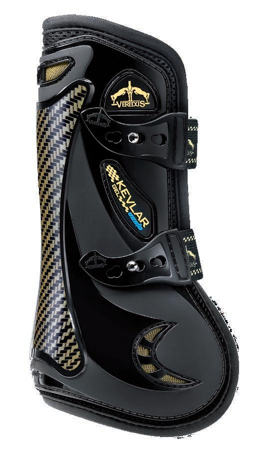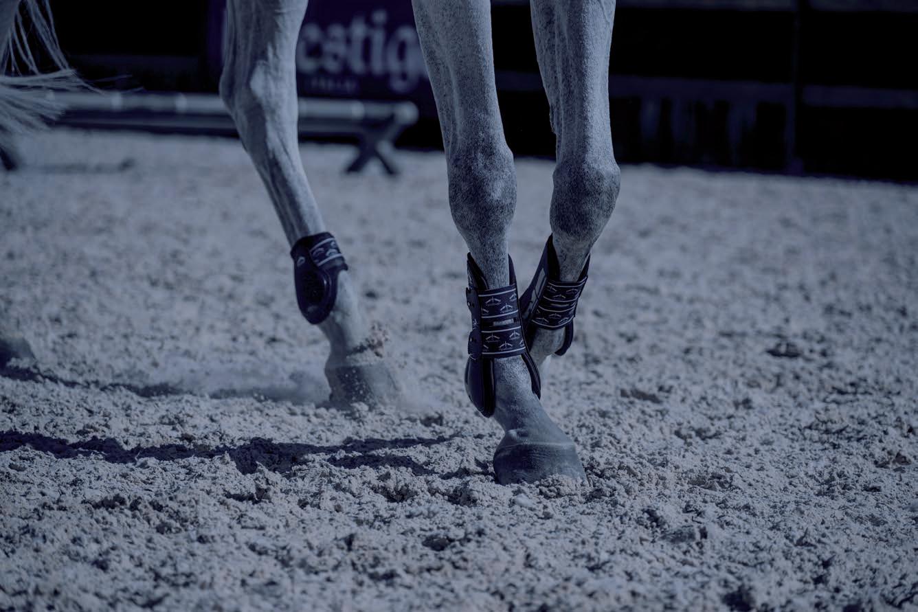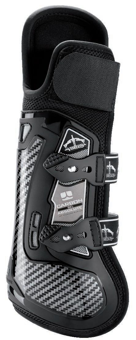 Diese Linie gewährleistet zusätzlichen Schutz dank einer Technologie, die durch eine Erweiterung aus Carbon und Gel mit besonders schützenden und stoßabsorbierenden Eigenschaften weitere Bereiche des Pferdebeines absichert.