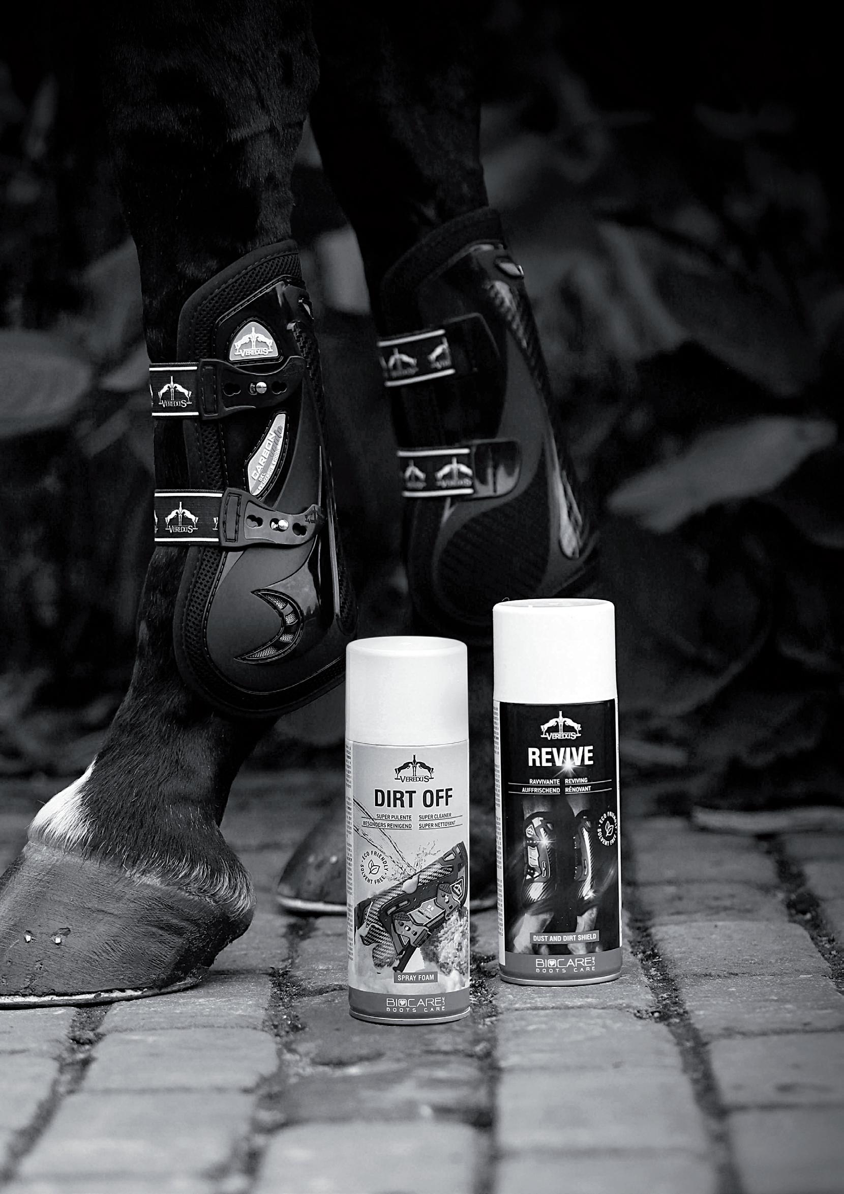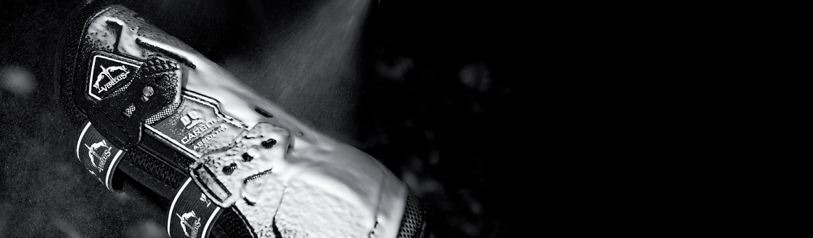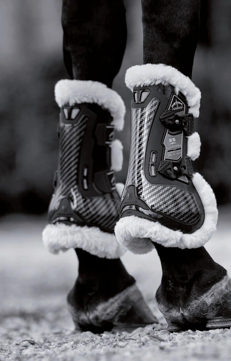 Diese Linie gewährleistet zusätzlichen Schutz dank einer Technologie, die durch eine Erweiterung aus Carbon und Gel mit besonders schützenden und stoßabsorbierenden Eigenschaften weitere Bereiche des Pferdebeines absichert.