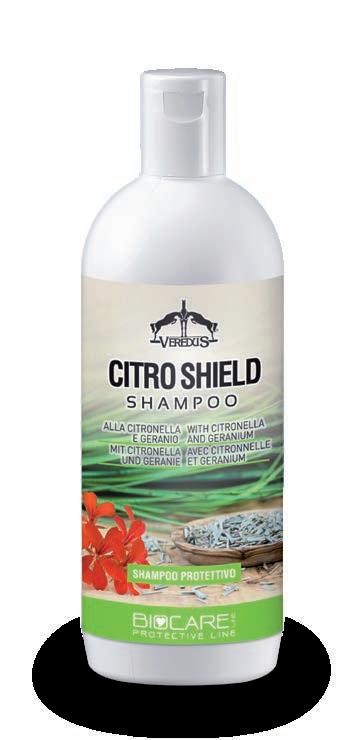 Citro Shield Shampoo verbindet die reinigende und pflegende Wirkung mit den schützenden Eigenschaften von Citronella und Geranie. Um die Wirksamkeit zu verbessern, sollte zusätzlich Citro Shield Spray verwendet werden.