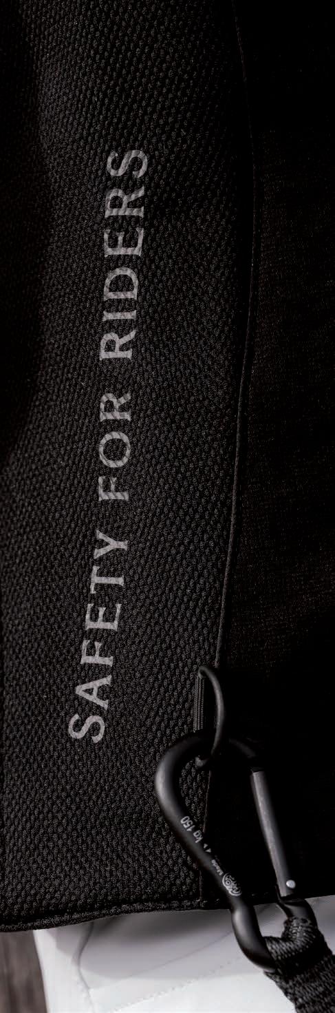 Diese neue Produktlinie verkörpert die Anwendung unserer umfassenden Expertise auf dem Gebiet Gamaschen und Ausrüstung für das Pferd auf ein ehrgeiziges und revolutionäres Vorhaben, das ganz der Sicherheit von Reiterinnen und Reitern gewidmet ist.