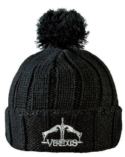 Wollmütze mit Bommel und Veredus Logo.