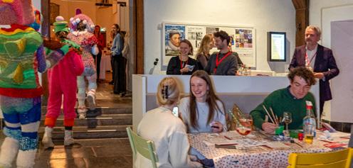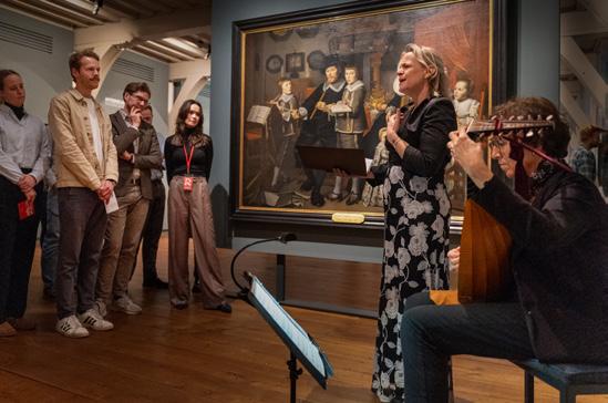 Het vijfjarig jubileum van JongRembrandt werd in december 2023 uitgebreid gevierd in Museum Prinsenhof Delft. Een van de programma-onderdelen speelde zich af op de zaal met schuttersstukken, waar psycholoog René ter Horst met zijn spoedcursus Visual Thinking Strategies de bezoekers uitnodigde tot gesprekken over de kunst van het kijken (zie ook pp. 48-49).