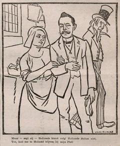 Ik denk dat het hem vooral om het beeld was te doen: om het contrast tussen de grijze buitenwereld en de verleiding van de met kunstlicht fonkelende etalage. In snelle, hoekige streken weet hij de figuren te typeren. De silhouetten van de nieuwsgierige voorbijgangers steken er fraai bij af, als bij een schimmenspel. Het was een effect dat Israels vaker zou gebruiken, bijvoorbeeld bij een ander etalagebeeld, een jaar later.