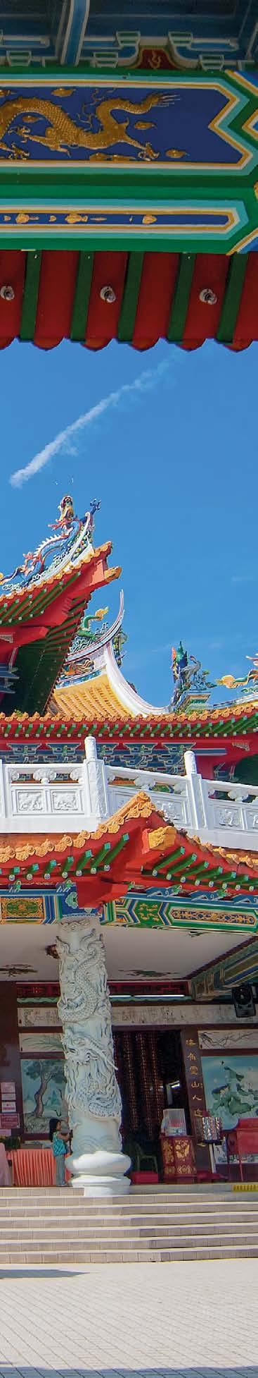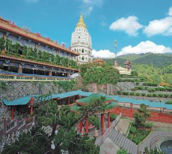 San Pablo. El silencio ahí no era vacío, sino lleno de historias de siglos pasados. En el corazón de Malaca, encontrarás el templo Cheng Hoon Teng, el más antiguo de Malasia. Sus vibrantes colores y diseños intrincados te harán detenerte a observar cada detalle. Podrás ser testigo de ceremonias tradicionales que, aunque nuevas para los viajeros, te harán sentir bienvenido y conectado con algo más grande. El siguiente capítulo de tu travesía te llevará a Penang, una isla que, desde el primer momento, te conquistará con su energía. El templo Kek Lok Si, el complejo budista más grande del país, te recibirá con su majestuosidad. Desde sus pagodas hasta los serenos estanques de lotos, cada espacio parece diseñado para inspirar calma y reflexión.