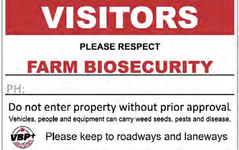 • Records / Photo(s) of representative sample of biosecurity preventative measures and controls. (Example: Biosecurity plan, visitor log and guidelines, commingling, reportable disease awareness)
