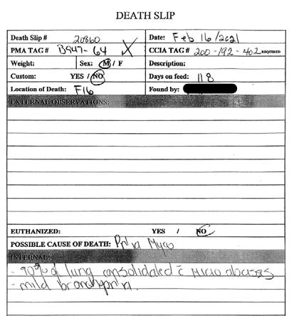 • Chronic pen - fed medicated feed and shipped for salvage