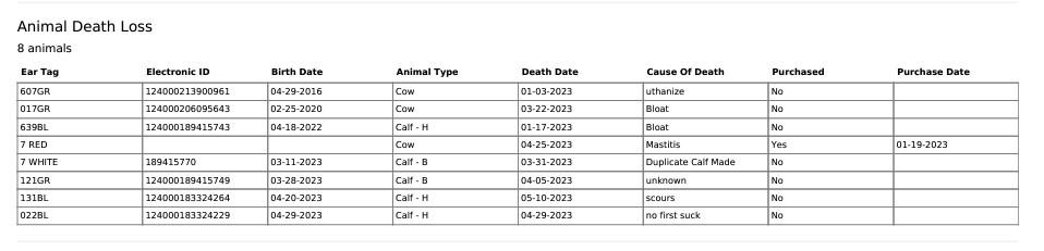 Record(s) of representative sample of a death and/ or euthanization. DEATH/EUTHANIZATION