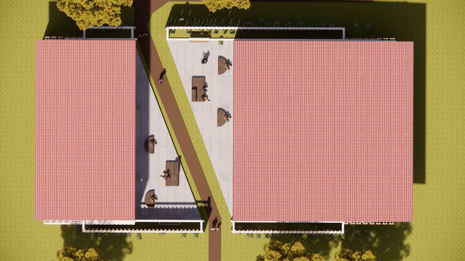 Ter aza A Busco una recepción que esta subd vida desde e espac o más púb co has a as zonas mas pr vadas subd v d dos po barreras natu a es - Puente que ayude a comerc o y a la estructu a de uga -Recorr do -O c nas que rec ben a os v s tan es -Ca e que e abre a os parqueos - Zonas Comune