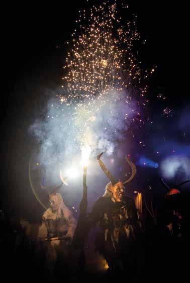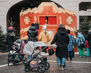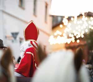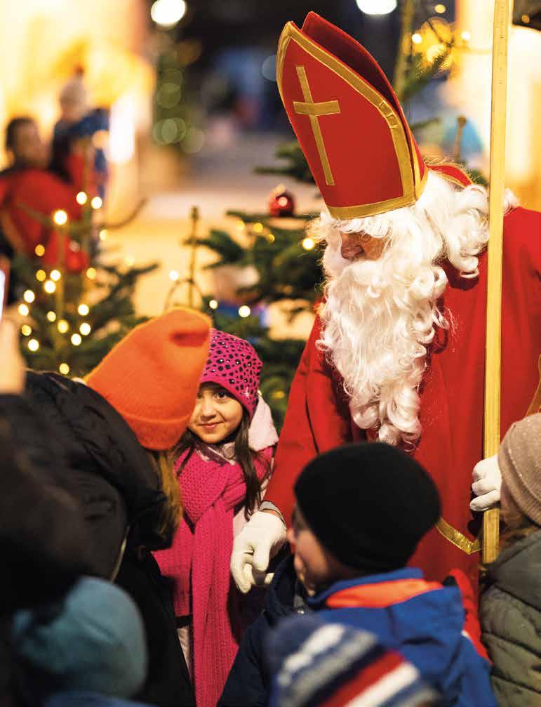 Doch zurück zum Kids-Xmas, das noch nie so viel geboten hat wie in seiner 2024 Ausgabe: In St. Michael wird am Wochenende vom 6. bis 8. Dezember drei Tage lang ein nonstop-Kinderprogramm angeboten: Bastelwerkstätten (mit Rapunzel, siehe S. 8), Zeichenworkshops, Kasperltheater, Buchvorstellungen, Trampolinspringen, eine Keksbackstation und ein Kinderkarussell. Kekse werden von und mit Kindern auch an den anderen Samstagnachmittagen vor Weihnachten gebacken, das Kinderkarussell ist den ganzen Advent über geöffnet. Ein traditionelles Highlight ist der Nikolaustag am 6. Dezember: Um 15 Uhr startet der große Nikolausumzug vom Bahnhof in St. Michael und zieht bis zum Rathausplatz, wo er eine Stunde später von Groß und Klein heiß erwartet wird. Die Kutsche mit dem Nikolaus und seinem Knecht Ruprecht macht in der Bahnhofsstraße einen Zwischenstopp. Nach der Begegnung mit dem Guten kommen die Fratzen der Krampusse in