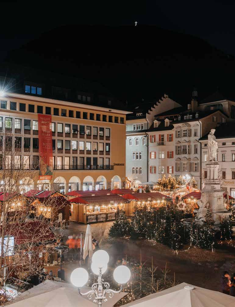 LIEBE Leserinnen und Leser, auch in dieser Ausgabe unseres bm Magazins wollen wir einen Blick hinter die Kulissen von Ereignissen und Orten werfen. Wir tun dies, in diesem Fall, um über die Bozner Kaffeehauskultur, vor allem aber die Organisation des Christkindlmarktes zu berichten. Die Veranstaltung hat Bozen einem breiten Publikum bekannt gemacht und zieht jährlich nach wie vor Hunderttausende von Besucher:innen an. Darauf sind nicht nur wir Veranstalter stolz, sondern auch die Stadt selbst, die in den Wochen der Advents- und Weihnachtszeit eine ganz eigenwillige, trotz der winterlichen Temperaturen, warme und gastfreundliche Atmosphäre ausstrahlt. Für uns, die wir hier leben und arbeiten, ist der Weihnachtsmarkt vor allem eine Gelegenheit geworden, Menschen zusammenzubringen – Bozner:innen genauso wie Gäste von außen; sie tauchen in eine Stadt ein, welche die Begegnung der Kulturen zu ihrer ganz eigenen Identität gemacht hat. Wir wünschen Ihnen eine anregende Lektüre, aber auch viele ruhige Augenblicke, um die Schönheit unserer Landschaften und städtischen Winkel zu erleben!