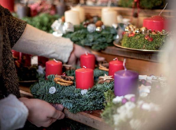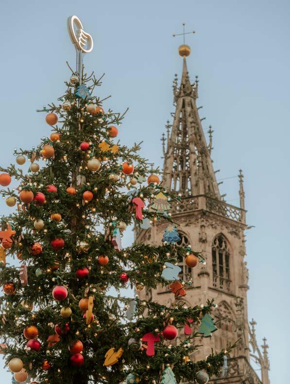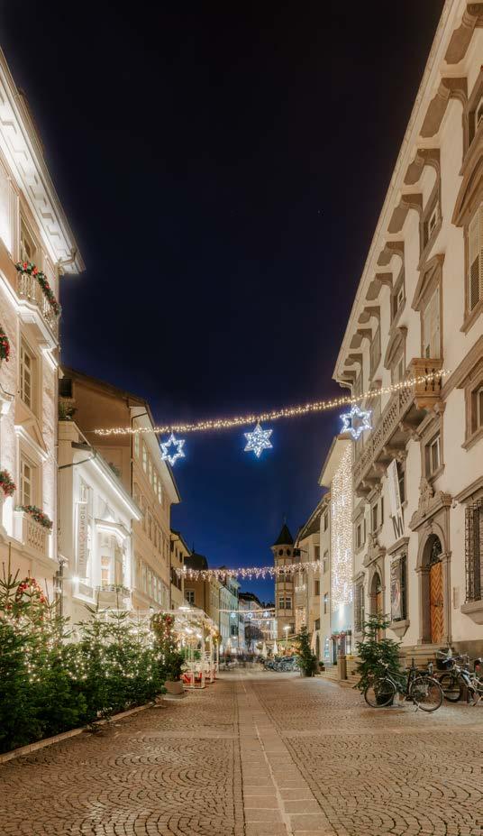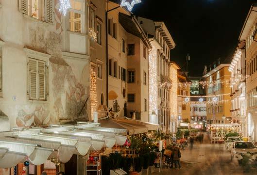 Funkelnde Lichterketten, filigrane Strohsterne, Christbäume in jeder Größe. Die liebgewonnenen Traditionen der Advents- zeit erfüllen die Städte Bozen, Meran, Brixen, Bruneck und Sterzing. Nicht nur in ihren historischen Zentren mit den Original Südtiroler Christkindlmärkten, sondern auch darüber hinaus. Die Vorfreude auf Weihnachten ist überall. Durch Girlanden behängte Gassen flanieren, Kulinarik und Gastkultur genießen, Konzerte und Ausstellungen besuchen. Wer sich in der besinnlichen Ruhe der Natur bewegen will, bekommt in den umliegenden Skiund Wandergebieten in den Genuss von aktiven Erlebnissen am Berg.