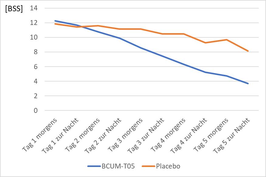 Abbildung 1: Zeitlicher Verlauf des BSS für BCUM-T05® und Placebo.