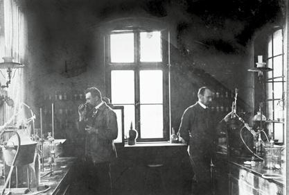 Die systematische Erforschung der Stoffe auf molekularer und atomarer Ebene, die Entwicklung genauerer Analysemethoden und schließlich die Entdeckung von Strukturformeln der chemischen Elemente brachten im 19. Jahrhundert weitreichende Fortschritte in der Wissenschaft der Chemie. Besonders die Erkenntnisse Friedrich Wöhlers trugen dazu bei, dass sich die organische Synthese-Chemie als neues Forschungsfeld etablieren konnte. Die Synthese von Naturstoffen (s.S. 14) aus unterschiedlichen und oft ausreichend verfügbaren Ausgangsstoffen war die Basis für die Entwicklung der chemischen Industrie. In diesem Bereich war Deutschland bis zum Ersten Weltkrieg führend.