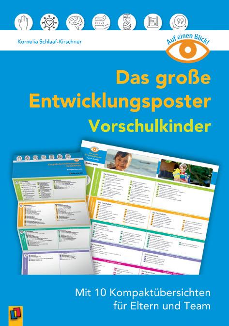 Das Entwicklungsposter-Set für Kinder von 3–6 Jahren ergänzt die Entwicklungsschnecke, ist aber auch unabhängig nutzbar. Es enthält ein großes Poster und zwei Kompaktübersichten. Ideal für Aushang, Beobachtungen und Elterngespräche. Farbiges Poster A1 ¦ auf A4 gefalzt ¦ 2 Leporellos ¦ 29,7 x 84 cm (ausgefaltet) ¦ 29,7 x 10,5 cm (zusammengefaltet)