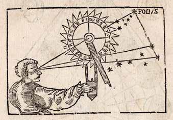 Das Instrument ist mit grosser Wahrscheinlichkeit europäischer Herkunft und besass in der sogenannten Scheibe mit dem Sehrohr oder der Nachtuhr (Horologium nocturnum) einen Vorläufer.1⁸ Die in mehreren illuminierten Handschriften des 11. und 12. Jahrhunderts abgebildete Vorrichtung diente dazu, die Mönche für das nächtliche Chorgebet zu wecken. Zudem steuerte sie –wie die Wasseruhr und später das Astrolabium – den Lebensrhythmus gemäss den Ordensregeln. In der Seefahrt diente das Nocturnal zur Korrektur der Breitenbestimmung und als Zeitmessgerät zur Berechnung des