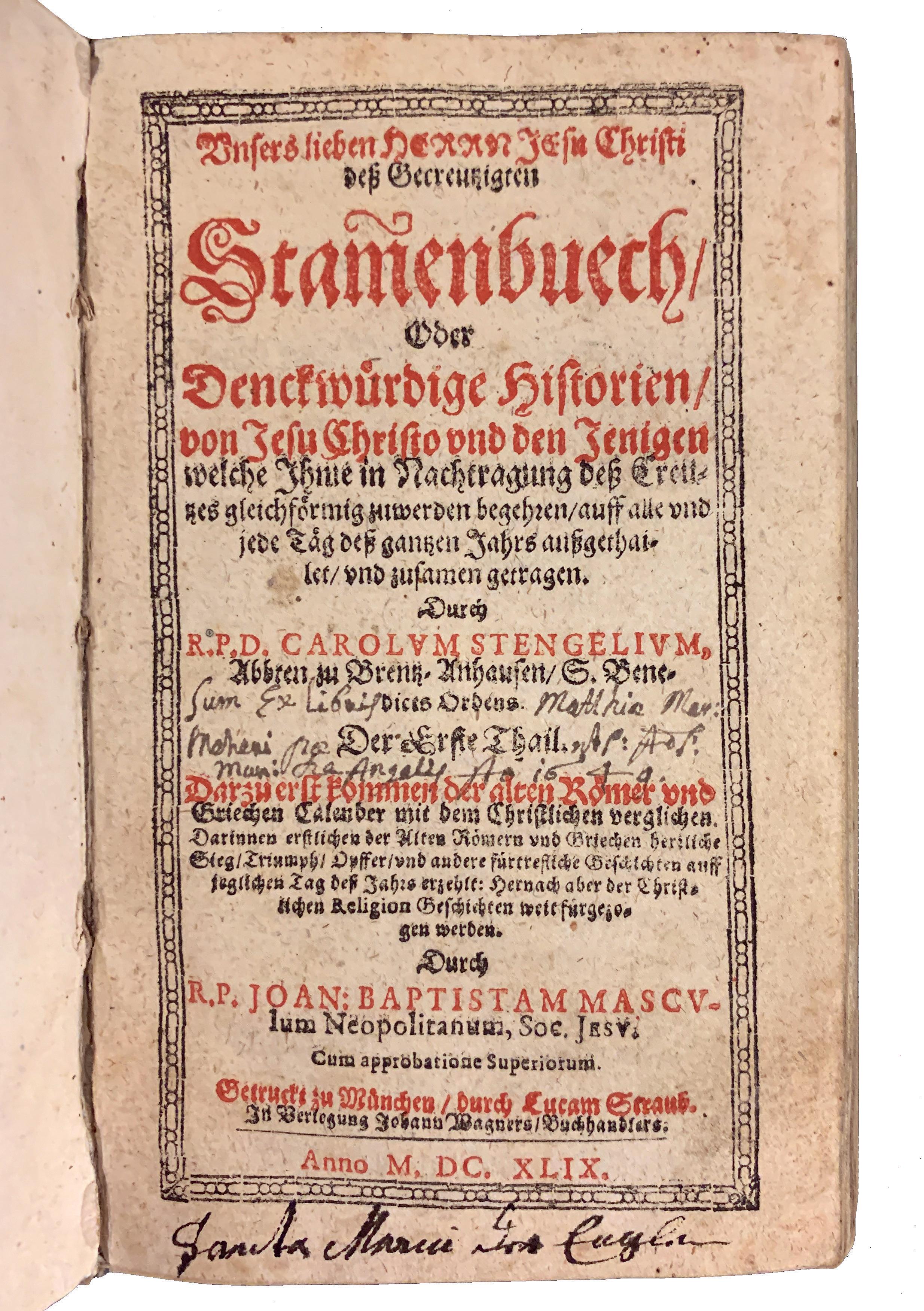Mathias Meher hat dem Kloster Wattwil mehrere Bücher hinterlassen, darunter ein Werk über Jesus Christus (Druckjahr 1649). Stiftsbibliothek St. Gallen, SGST 56472.1.