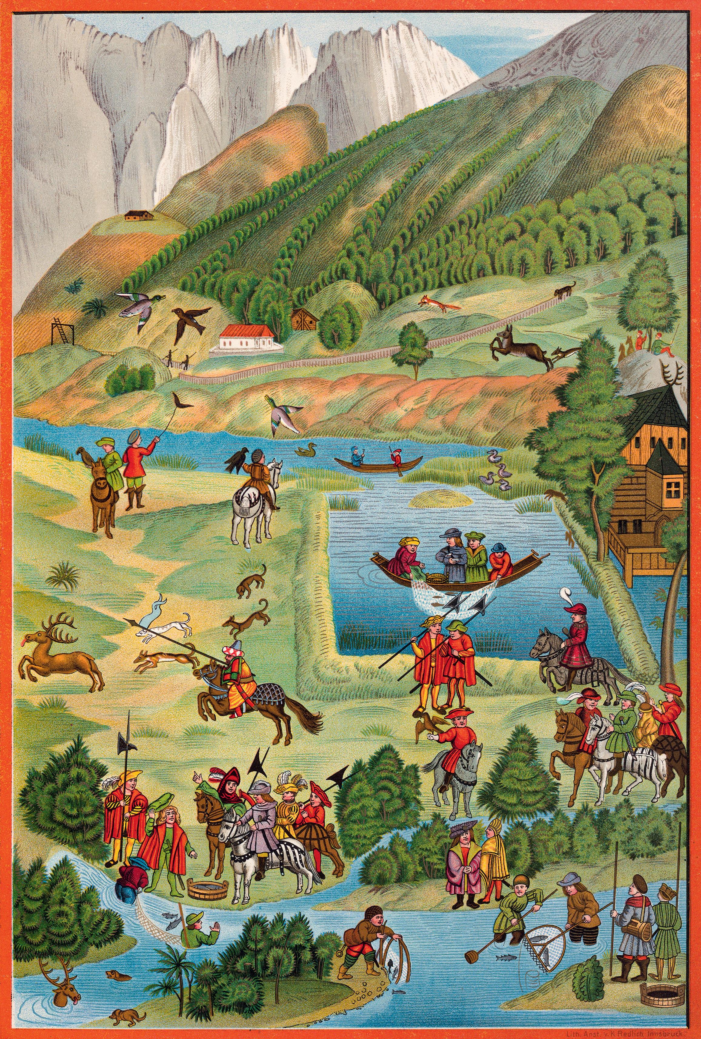 Fischweiher aus Kaiser Maximilians I. Fischereibuch von 1504. Zentralbibliothek Zürich, CX 96, Tafel 4.