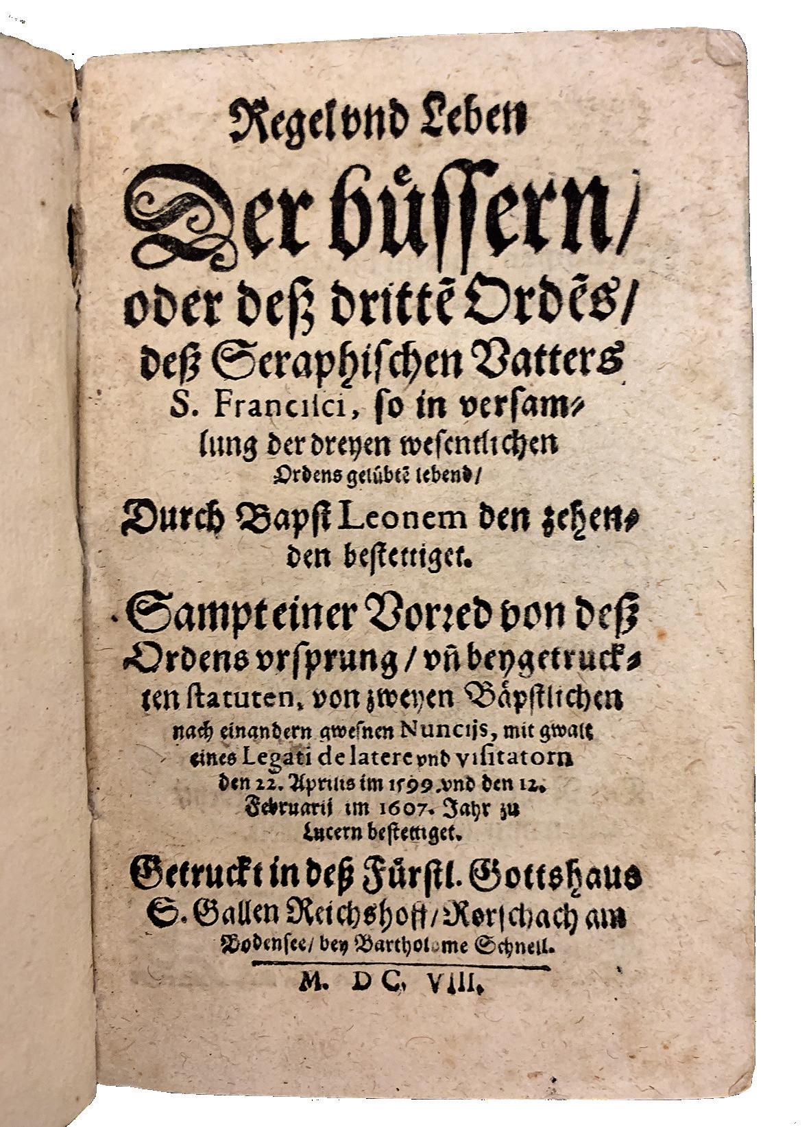 Regelbuch der Schwestern der Pfanneregger Reform von 1608, gedruckt in Rorschach. Stiftsbibliothek St. Gallen, SGST BiA 181.