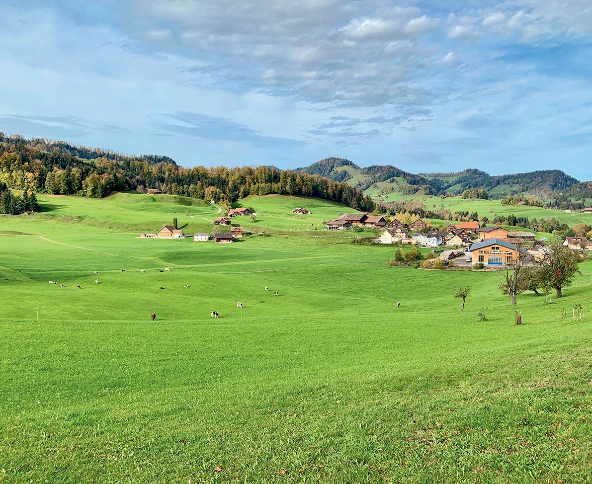 Oben links: Die Rindaler Flur Weier am Buebentalerbach.