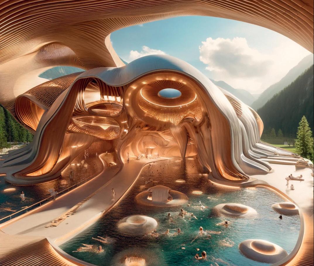 Das in den 2030er-Jahren gebaute Klanghotel Harmonia in der Schwendi.