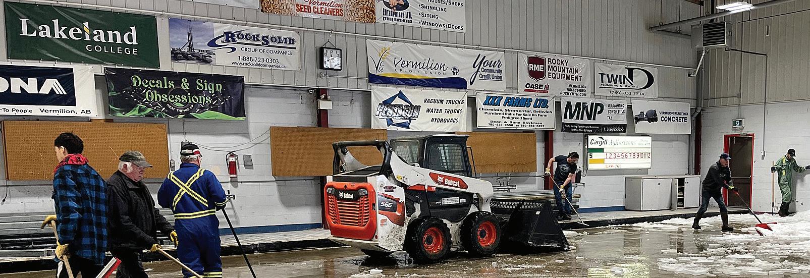 The next morning, a handful of volunteers joined the club’s secondgeneration icemaker Lawson Clyke to take out the beams separating the sheets of ice and break up some of the ice by hand before the arrival of a bobcat, which helped speed up the process.