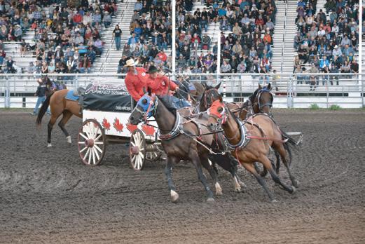The APCCA Chariots and Chuckwagons races roared to life at 6 p.m., keeping spectators on the edge of their seats. Laughter echoed through the grounds during the inflatable costume races at 7 p.m. between the Vegreville Ag Society Directors and Town Council followed by another adrenaline-pumping round of chuckwagon races at 7:30 p.m.