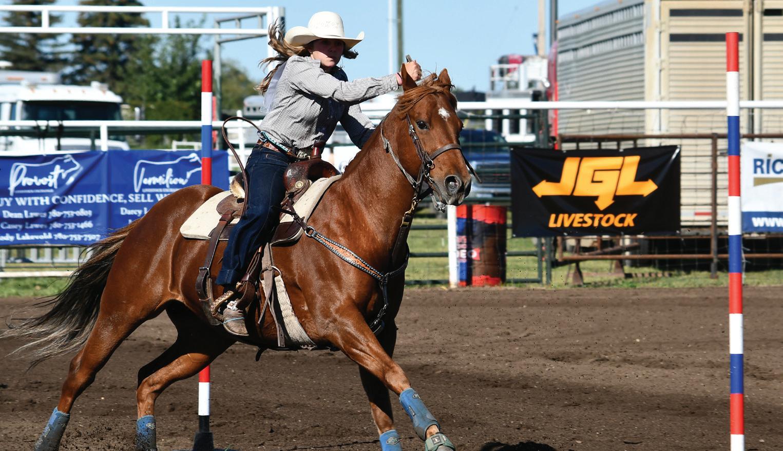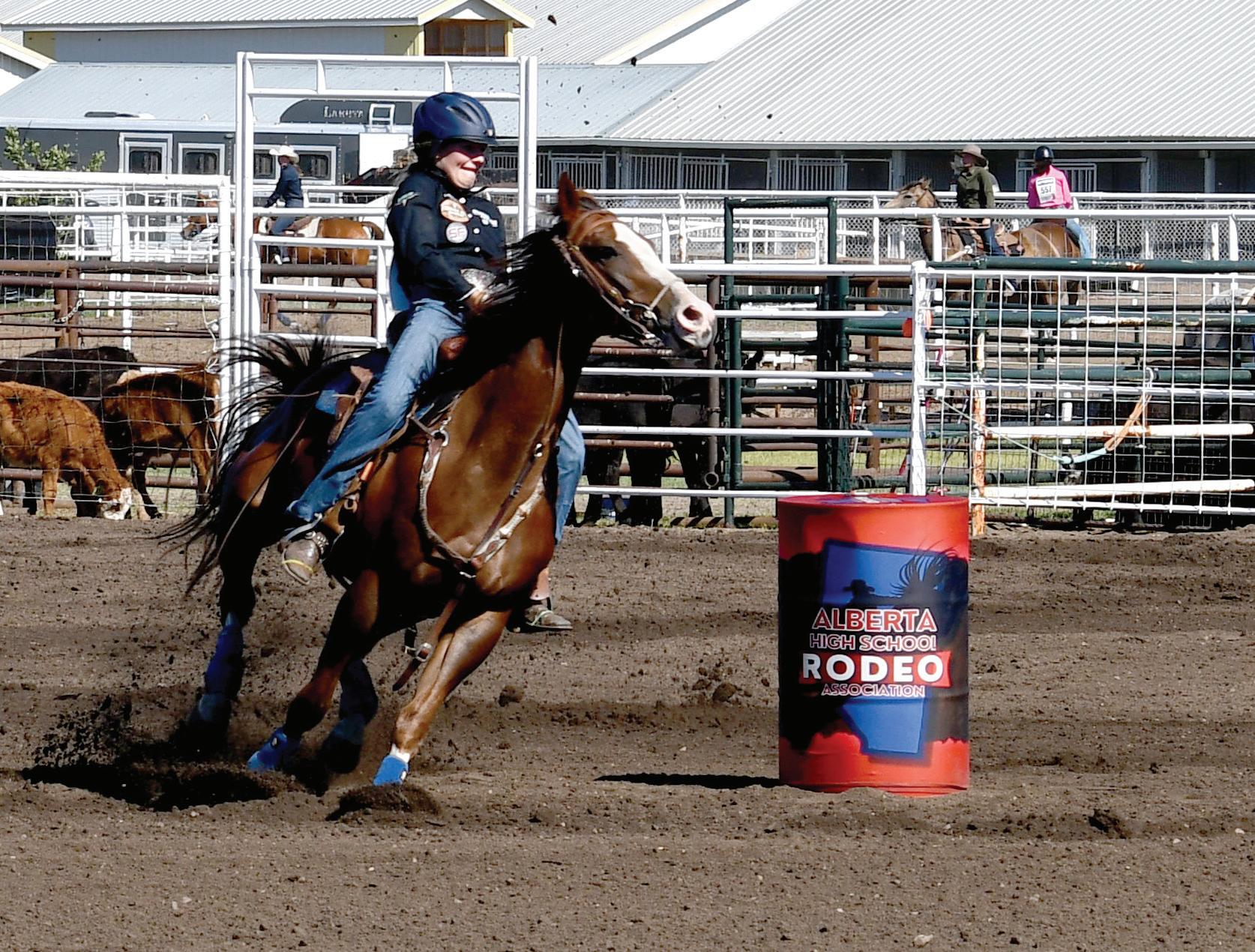 Senior competitor Mercedeze Wildeman from Wainwright taking on her second barrel in the Barrel Racing competition.